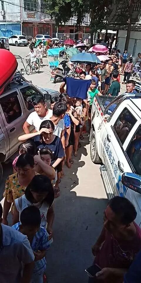 第二组由厦门高里、昊歌带队到下桥分发物资。下桥积水达1.1米,居民进出依然不便。组织灾民排队接受物资和消毒粉的发放。期间用冲锋舟运送一名医生进入村中,诊断后,应求助救援队将一名88岁高烧的老人转送至在村外马路等候的救护车上。