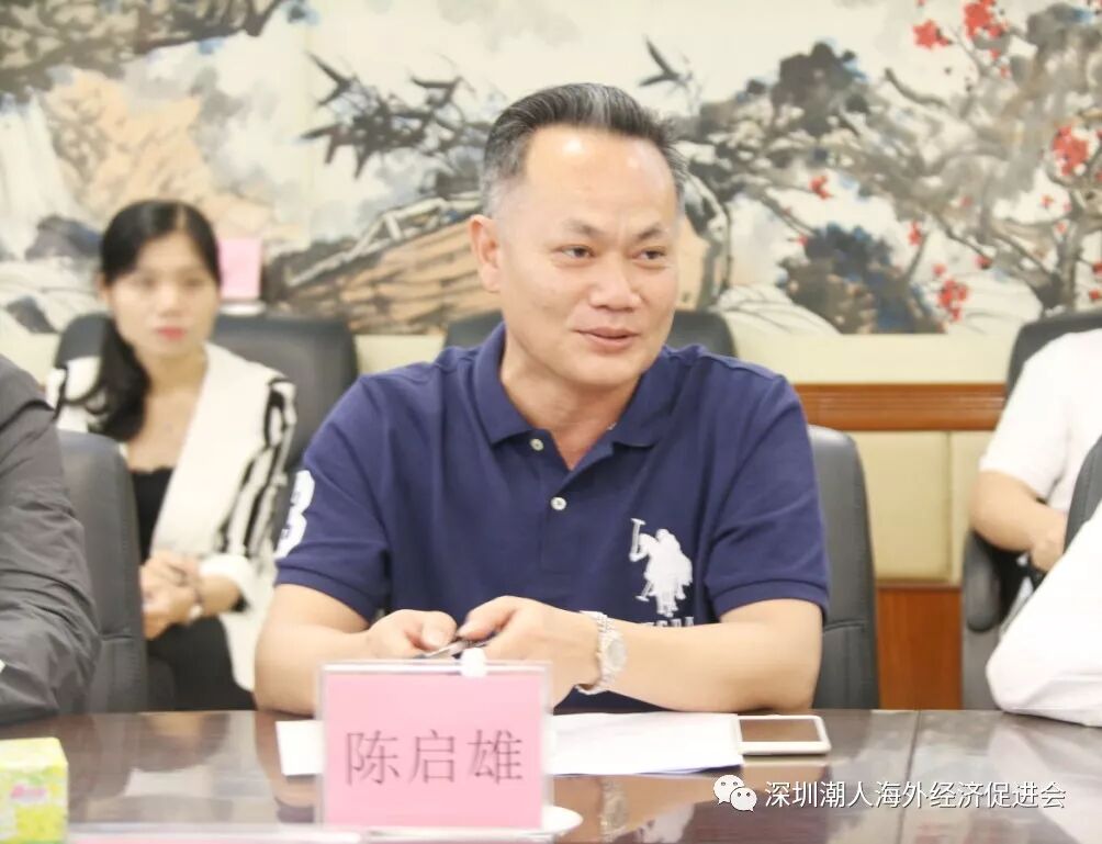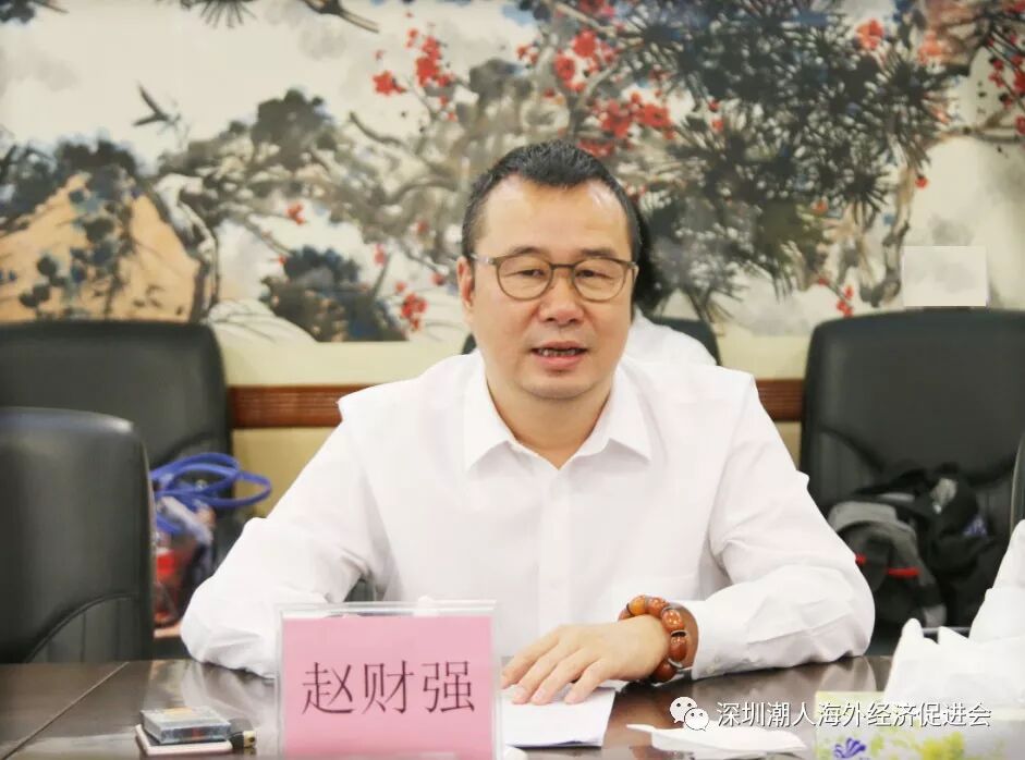 赵财强会长发表讲话 赵财强会长代表本会拜访团对蔡东士老书记、黄伟鸿老领导等广东潮联会相关领导的热情接见致以衷心的感谢。他表示,此次前来是怀着无比敬仰之心向各位老领导取经学习,热忱希望得到蔡老书记等领导对本会工作的指导和支持。同时,他汇报了本会换届的相关事宜及近一年来的会务情况,并诚挚邀请蔡东士老书记、黄伟鸿老领导等相关领导出席本会即将在12月15日举行的“薪火相传▪创新未来”第六届理事会就职典礼。他表示,深圳潮人海外经济促进会希望薪火相传,从经济全球化的积极参与者,变成更有影响力的思考者,更有作用力的推动者。照亮“海丝”的新使命新征程,拓展 “一带一路”新轴线。
