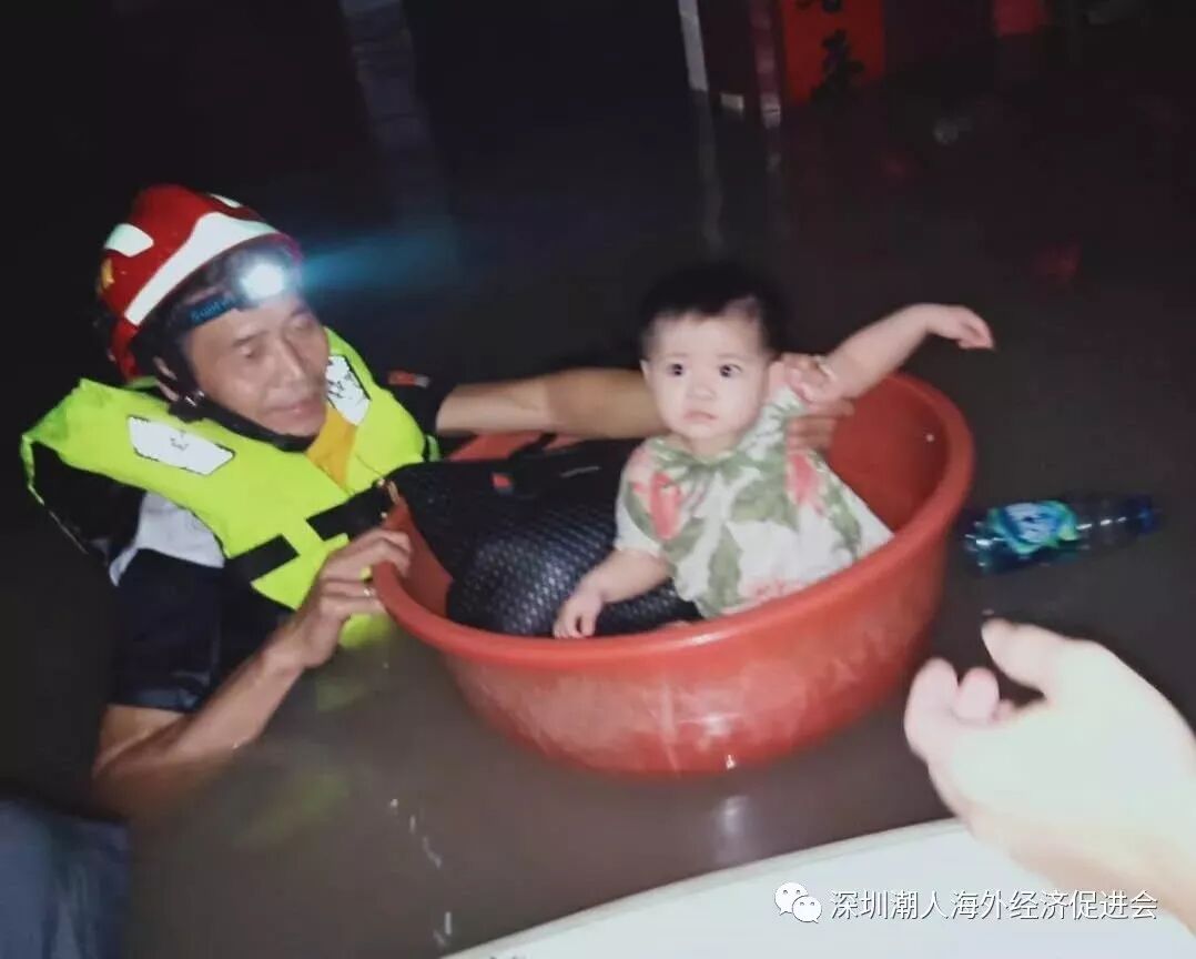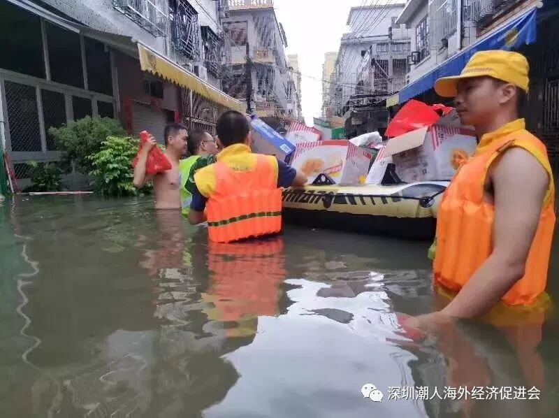 救灾实况 2018年8月30 日起,汕头市各区遭受连续24小时暴雨到大暴雨的袭击,多地街道积水成河,最高积水临近屋顶。截至当地时间9月2日7时,受强降雨影响,该市7个区(县),有6个区(县)55个镇(街道)受灾,受灾人口91.05万人,转移人口9.08万人,倒塌房屋58间,直接经济损失23.5亿元。其中潮阳潮南受灾人数达80余万人,是本次水灾最严重的地区。 ![]() 一方有难,八方支援 在洪水如兽般凶猛的三天里,交通中断、通讯受阻、用品短缺、生命堪忧;这两天,洪水虽然退去,但是潮阳潮南到处可见村居受浸、农作物受灾、房屋倒塌、水利设施受损等灾后急需救助和恢复的场景,灾区急需食物、药品等救灾物资。在潮阳、潮南人民抗灾救灾的紧急时刻,各地潮籍社团和广大潮商慷慨解囊,第一时间捐款捐物,倾力支援抗灾救灾工作,深刻诠释了“一方有难,八方支援”的真挚情义;广大在外乡贤、港澳同胞、海外侨胞心怀故里,情系家乡,遥寄问候,饱含着“情牵故里,血浓于水”的赤子情怀。