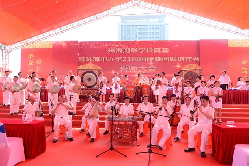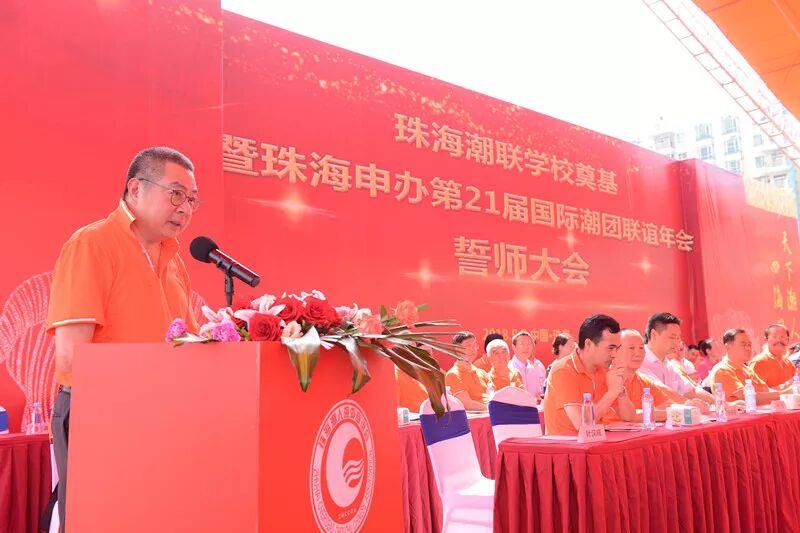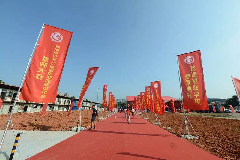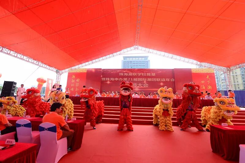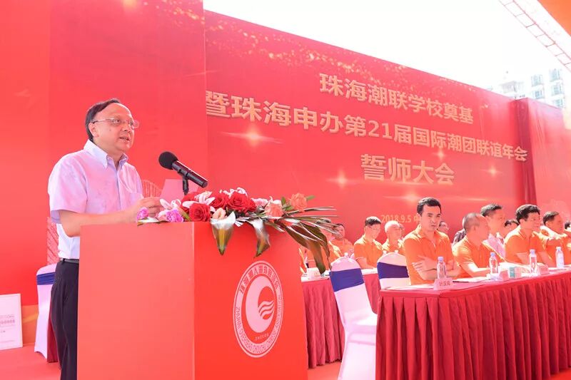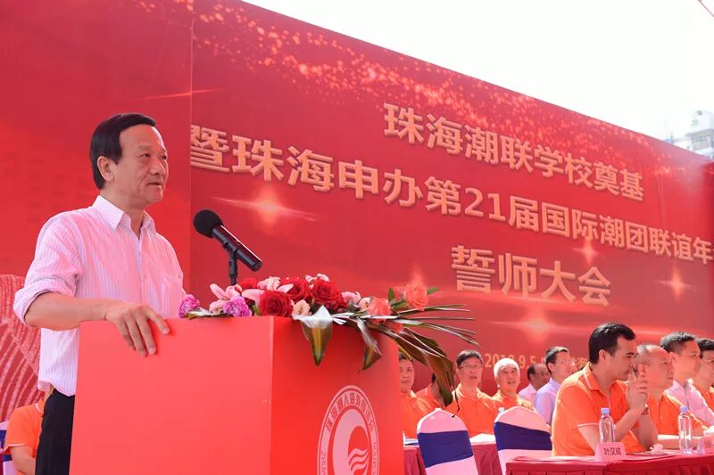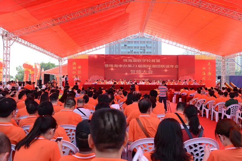 9月5日上午10:00,珠海潮联学校奠基暨珠海申办第21届国际潮团联谊年会誓师大会在潮联学校隆重举行。奠基典礼现场人潮涌动,原广东省副省长雷于蓝,珠海市委常委、统战部部长郭才武,珠海市副市长阎武,珠海市政协副主席黄文忠,珠海市统战部、市侨联、香洲区委区政府以及各部门等领导,全国人大代表、中国侨联副主席刘艺良先生,国际潮团总会常委理事、香港潮属社团总会主席陈幼南先生,珠海潮属社团、兄弟商会等代表近千人应邀参加此次活动。