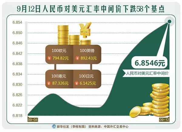 12日人民币对美元汇率中间价报6.8546,较前一交易日下跌58个基点。