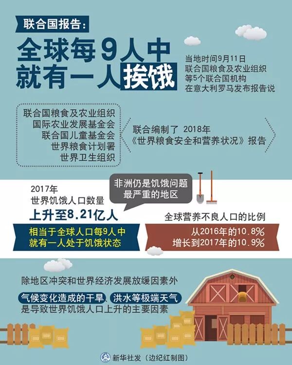联合国粮食及农业组织等5个机构发布报告说,2015年以来,全球饥饿人口数量上升,粮食安全状况有恶化的趋势。