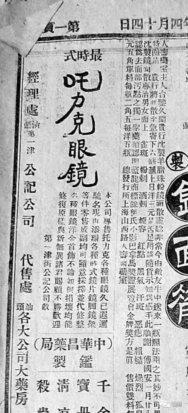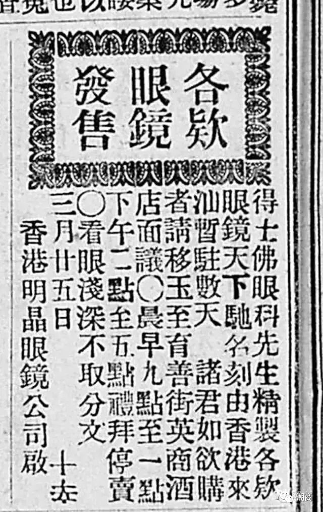 如果不问度娘,你知道“叆叇”是什么吗? ![]() 其实,“叆叇”即是我们现在所说的眼镜。 很多人可能都觉得眼镜是西洋玩意儿,是近代才传入中国。事实上,我国在明朝中期就出现了眼镜。明万历田艺蘅在《留青日札》卷二《叆叇》条云:“每看文章,目力昏倦,不辨细节,以此掩目,精神不散,笔画信明。中用绫绢联之,缚于脑后,人皆不识,举以问余。余曰:此叆叇也。” ![]() 描绘明永乐年间南京城区民众生活场景的明代绘画《南都繁会景物图卷》中,有一老者戴着眼镜。而清代赵翼则称眼镜传入中国是在明朝宣德年间。 ![]() 明代绘画《南都繁会景物图卷》 清嘉庆年间,眼镜得到普及,张子秋在《续都门竹枝词》云:“近视人人戴眼镜,铺中深浅制分明。更饶养目轻犹巧,争买皆由属后生。”根据清李光庭所著《乡言解颐》记载,我国古代眼镜根据子丑寅卯十二地支来划分深浅标度。 鸦片战争以后,西方的配镜技术传入我国,为眼镜行业的崛起开辟了新的道路。清朝末年,首先是英国人约翰·高德在上海开设了“高德洋行”,专营机磨检光眼镜。之后其他洋人接踵而来。如托极司开设了“明晶洋行”,英籍犹太人雷茂顿开设的“雷茂顿洋行”等。 ![]() 汕头作为百载商埠,开埠之后工商业发达,那么当时的汕头百业中,有没有售卖眼镜的呢? 光绪三十一年(1905),明晶眼镜香港公司开始来汕头开拓市场。他们率先在《岭东日报》上刊登广告:“得士佛眼科先生精制各款眼镜天下驰名,刻由香港来汕暂驻数天,诸君如欲购者请移玉至育善街英商酒店面议。晨早九点至一点,下午二点至五点,礼拜停卖。看眼浅深不收分文。” ![]() 从此则广告的字里行间可知,当时他们只是“来汕暂驻数天”,即是说,只是来汕头试探市场。大约过了三年左右,明晶眼镜终于在汕头设点销售: ![]() 啓者:兹有英国明晶洋行由香港来汕头,运到各款新式极好眼镜,金边、银边、平光、老镜各样具全。诸君如欲购买者,其深浅均可到海利对和,如男女老幼有眼光失明或染患眼疾,本行能派人到视审症,配镜十分利便。无论本埠远近,如请本医生到诊者,只理轿价,不计笔金。货真价实,早已驰名中外。此着来汕头暂住几天,其价悉照香港发售。 民国六年,《观潮日报》刊登了汕头埠第一津街(今永平路)公记公司的一则眼镜广告,宣传其公司销售的吒力克眼镜:“本公司专售吒力克各种眼镜,久已遐迩驰名。现再添办各种时式镜片、镜脚、镜架等件,零售成副均可随意採择,并代修整各种眼镜、洋金首饰,不论如何损坏,均能修复原样,与新无异。诸君赐顾,不胜欢迎。经理处,汕头第一津(街)公记公司,代售处汕头各大公司大药房。” ![]() 我们从上面这几则广告,可以看出一个有趣的变化,清末英商来汕销售眼镜,销售点均在酒店,民国初期则改为市区各大药房了。 又过了几年,大约民国十年前后,洋眼镜不再满足成品进入汕头市场销售,开始把制镜设备亦引进到汕头埠,全面占领汕头眼镜市场。下面这则,是刊登于民国十年汕头《平报》的源昌眼镜公司广告: ![]() 本公司开幕已来,极荷社会欢迎,特由美国运到磨镜机器暨各种上品原料,以应各界之需求,专聘磨镜机师亲自制造各种镜片并置验眼仪器多种,以便察验。凡近视、老花、散光、斜光种种,皆可依眼制镜,分毫不差。较之市上所售铸片冒充美国眼镜者,大相悬殊。诸君光顾,务请认明招牌,庶免致误。 ![]() 眼镜这东西,并不是人人之必须品,且作为洋眼镜,在清末及民国,对于一般市民来说,亦属奢侈之东西。故市场销售量亦不是很多。我们从报纸上看到的眼镜广告,比起香烟、洋酒和各种洋药来,亦属凤毛麟角。不过,从这几则广告,或可一窥汕头埠旧时的眼镜销售市场。 声明:本文不代表我们的观点,仅供读者参考。文章版权归原作者所有,如有侵权,请联系我们进行删除。 收藏 |