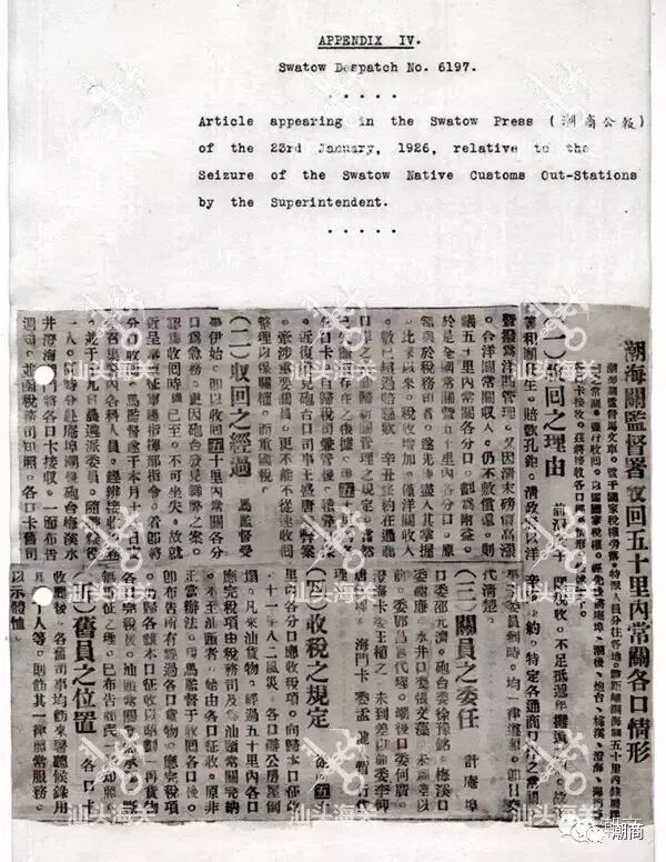下午4时,马文车才发出函件向潮海关税务司贺智兰告知此事,并指出:潮汕50里内常关各口,本归监督管理。辛丑条约所载亦仅指通商口岸常关归税务司管理,并无50里内各口在内。税务司徇总税务司之情,将50里内常关各口改归税务司管理,实出条约之外。且各口积弊甚深,近日复发现炮台司事王盛唐舞弊案,尤不能不收回整顿为由。 ![]() 当天马文车还发出通电,陈述收回常关分口的理由,大义凛然地宣称:国家设关征税,古今中外所同,课榷自由,本无外人置喙余地,更不容客聊越俎代庖。今将常关分口渐次收回,一方既厚集各革命力量,为民众多造幸福,一方既减削国内军阀接济,为国家促进和平。望洋关、常关和璧归还,关权主权,金瓯无缺。此乃国民成功应历之程序,是废除一切不平等待遇之先声。 6天后,马文车又复函驳斥潮海关税务司的谬论,强调说:“贵税务司对我国收回50里内常关各分口,不论意见如何,均无抗议之余地。” ![]() 马文车这一争民族主权之举,开创了我国收回常关的先例,大长了人民的志气,也震动了外国侵略者在中国的税务制度。1月23日汕头的《潮商公报》以“潮海关监督收回50里内常关各口情形”为题,报道了这一事件的经过。《岭东民国日报》等报也作了专题报道。1926年潮海关的《汕头口岸贸易报告》也记载了此事。这一震奋人心消息,多家报纸被抢购一空,大有洛阳纸贵之势。