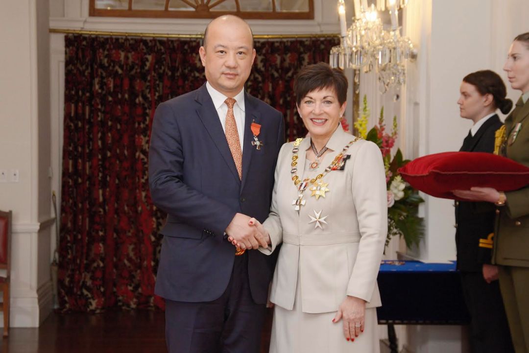 国际潮团总会主席、新西兰潮属总会董事局主席张乙坤先生今晨赴惠灵顿新西兰总督府参加授勋仪式。 新西兰总督 Rt Hon Dame Pasty Reddy 代表英女王为张乙坤颁发新西兰国家荣誉勋章(MNZM)。
