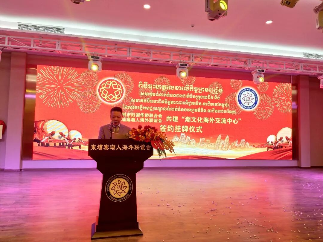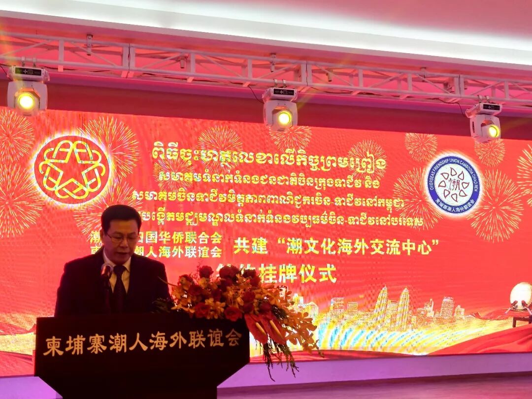 2018年9月9日—18日,为切实做好市委市政府“推动潮文化和海外文化交流”、“广泛团结联系海外侨胞和归侨侨眷,共同致力于中华民族伟大复兴”项目落地生根、开花结果。由潮州市委常委、统战部部长徐和为团长,潮州市侨联主席陈敏为副团长带领的侨联访问团,出访柬埔寨、马来西亚和菲律宾,拜访了当地重要社团、侨领和知名乡亲。市侨联办公室副主任邱镇忠,本会副会长黄武雄、余坤锐、丁伟忠、林潮佳,执委夏继平,委员黄锐雄、陈培斌,潮州市载阳侨文化传播中心主任廖奕铭,本会委员、副主任龙素玲等随团参加活动。 在潮州市侨联与柬埔寨潮人海外联谊会、马来西亚潮州公会联合会、菲律宾菲华潮汕联乡会、菲律宾潮汕总商会共同推动下,“潮文化海外交流中心”分别于9月9、13、16日在上述社团挂牌成立,市侨联主席陈敏分别与柬埔寨潮人海外联谊会会长钟廷武、马来西亚潮州公会联合会总会长拿督斯里黄赐兴、菲律宾菲华潮汕联乡会会长黄秋发、菲律宾潮汕总商会会长陈慎修在共建合作协议上签字。 潮州市委常委、统战部部长徐和,市侨联主席陈敏,各社团的领导和嘉宾为“潮文化海外交流中心”揭牌。 潮州市委常委徐和分别在挂牌仪式上发表热情洋溢的致辞。徐和高度赞扬广大旅居柬埔寨、马来西亚、菲律宾的潮汕籍乡亲一直保留着自强不息、努力打拼的传统,为推动所在国社会发展和原乡原国友好往来作出了重要贡献,他为乡亲们感到骄傲和自豪,感谢乡亲们为潮州人争气。徐和表示,成立“潮文化海外交流中心”,旨在通过潮州文化的引领作用,讲好中国故事尤其是潮州故事、传播好潮州声音、阐释好潮州特色,促进潮州与“一带一路”特别是“海上丝绸之路”沿线国家的文化交流,为推动各项合作奠定思想基础、感情基础和社会基础,建立和谐友善的情谊,激活海外乡亲原乡情结,聚侨心汇侨力,推动海上丝绸之路沿线深度融合、共同发展。他说,“潮文化海外交流中心”挂牌成立,凝结了潮州市侨联和柬埔寨潮人海外联谊会、马来西亚马潮联公会、菲律宾菲华潮汕联乡会、菲律宾潮汕总商会的心血,承载各方的关注和期待,衷心希望潮州市侨联和各签约社团以此为契机,深化务实合作,扩大人文交流,推动潮州与柬埔寨、马来西亚和菲律宾的友好往来和密切合作。 签约挂牌仪式盛况空前,在当地引起轰动,备受各界关注,《柬华日报》、《星洲日报》、《中国报》、《东方日报》、菲律宾华文电视台CNTV等当地主流媒体纷纷在重要版面和黄金时间大篇幅进行报道;今日头条、中国新闻网、中国侨网、人民网、新浪、搜狐等也做报相关报道。 9月9日晚,“潮文化海外交流中心”率先在柬埔寨潮人海外联谊会挂牌,柬埔寨柬华理事会、在柬华社等近千名嘉宾到场祝贺。柬埔寨潮人海外联谊会会长钟廷武在致辞中说出了旅柬潮籍乡亲的心声,他说,潮州文化是中华文化其中之一,为传承和发扬潮州文化,柬埔寨潮人海外联谊会率先成立“潮文化海外交流中心”,将更好地推动潮州文化在住在国传承与弘扬。参加活动的中国侨联海外顾问、柬华理事总会轮值常务副会长郑源来勋爵说,希望通过这次的交流,促进彼此互相认识,增进感情,进而带动两地今后更加频繁的交流与合作将具有重要的意义。