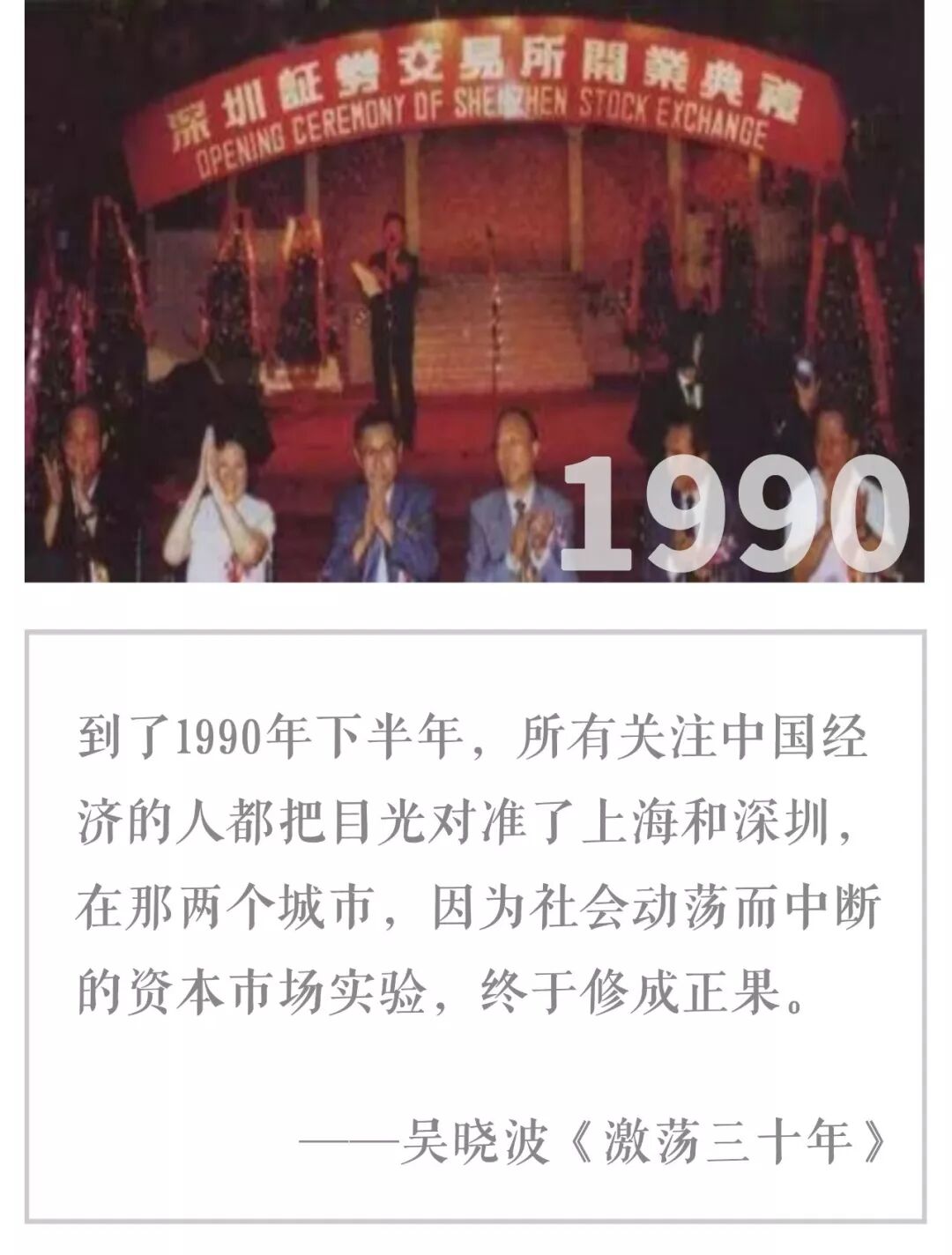 改革的脚步走得匆忙,一切都是摸着石头过河,连开市也是猝不及防。 1990年3月,时任上海市委书记的朱镕基在香港记者招待会上说,上海证券交易所将在年内成立。然而此时,上海的金融官员其实对这个时间表都闻所未闻。 12月19日,上海证券交易所举行开业典礼,第一任总经理尉文渊空手上任。当时全上海可作为会员的证券公司只有3家,够上市资格的则只有6家,就这么“三把蔬菜”“六块肉”,尉文渊硬是把它们炒成了一桌菜。据说,尉文渊敲完锣后,激动得当场晕倒,被人搀扶着离开了热闹的场所。