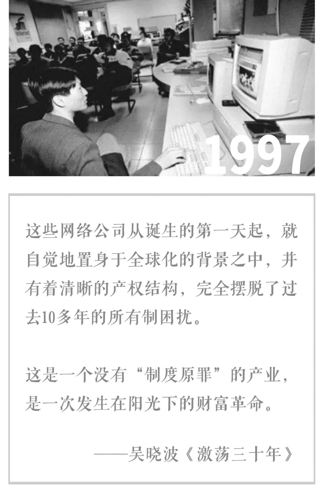 南方沿海城市的工人,以这笔遣散费为启动资金做起了小生意或者自主创业。而在北方就没这么好过了,尤其是老工业基地,以厂为家、世代传承的工作与生活模式使下岗工人们几乎丧失了独立的勇气和能力,再加上北方没有经商和创业的氛围,下岗对他们意味着“坐吃山空”。 对于80年代生人来说,这可能是大多数家庭最为痛苦的一段记忆。 06 互联网元年