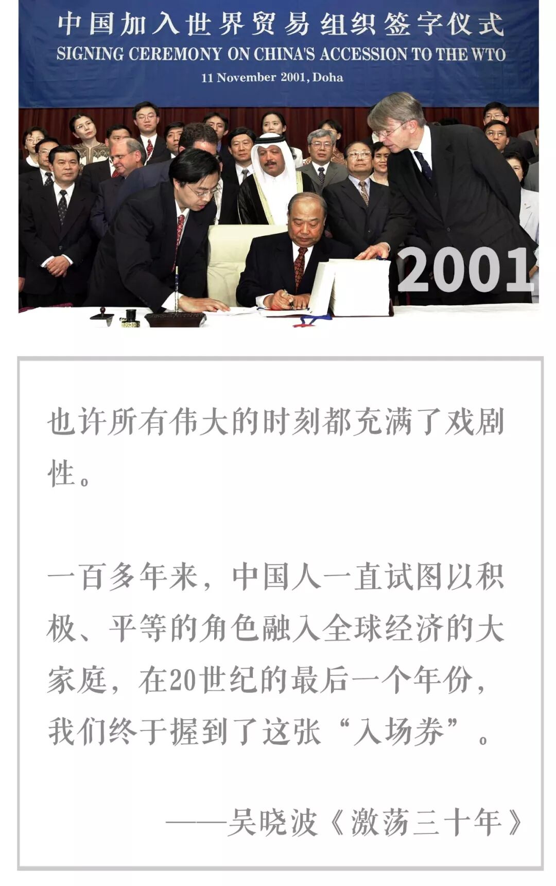 (1999-2001) 强心针等了三年,或者说争了三年。 1999年,澳门回归,深圳进入“全国第4城”时代。 年底,中美签署关于中国入世的双边协议。此前谈判中,美方展现出的扯皮、背后搞小动作、达成意向又反悔,丝毫不亚于今日。 这一年,全国GDP增速仍在8%以下。那时盼着,协议签了,争取在2000年上半年正式加入WTO吧? 2000年,下半年,中国加入世贸组织多边程序开始启动。 当年,中国国内生产总值突破1万亿美元。 同时,“西部大开发”战略开始部署实施,当然成果要在数年之后才显现。 2001年,经历几年的憋屈(包括南联盟大使馆被炸事件和南海撞机事件等)之后,年底,中国加入WTO。 随即,美国宣布给予中国永久正常贸易关系地位。 讲了许久国际局势,接下来让我们回到城市。