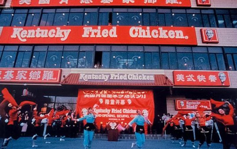 1987年冬天,中国第一家肯德基在北京前门开业。虽然下着雪,前来吃洋快餐的中国人们还是排起了长队。