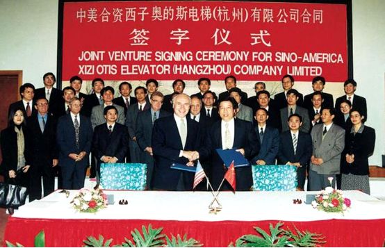西子与美国奥的斯电梯公司合资的签字仪式