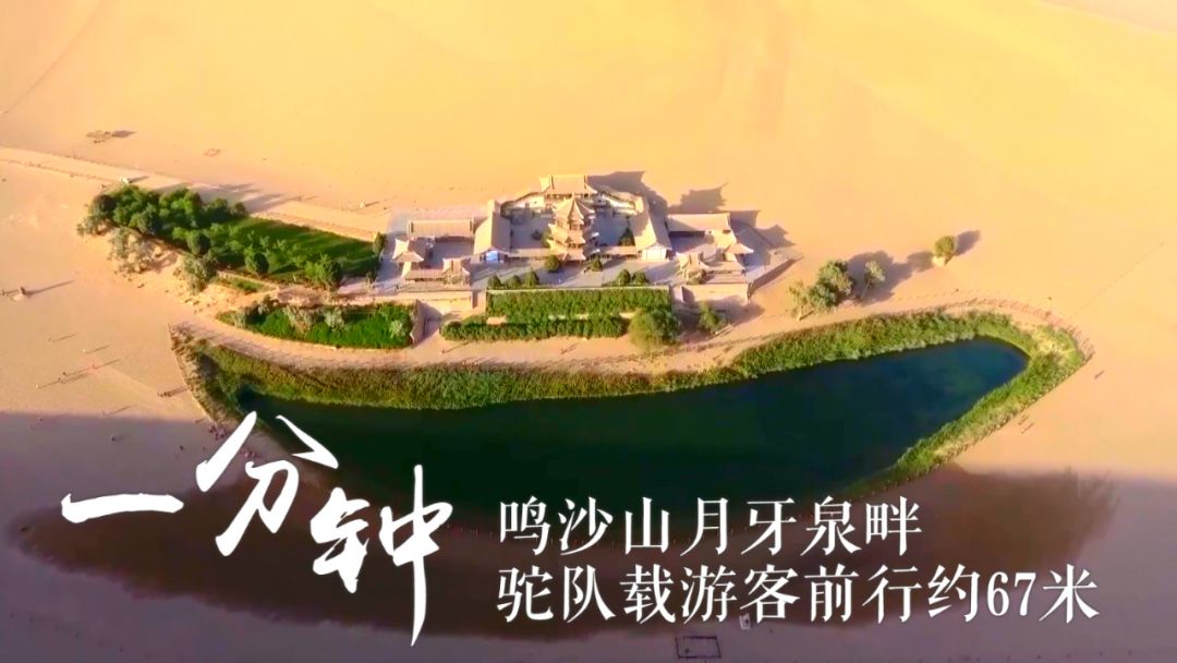 一分钟,10人可走进敦煌莫高窟 一分钟,月牙泉畔驼队载客前行约67米 一分钟,11人领略张掖丹霞地貌 一分钟,127名游客走上“黄河第一桥”