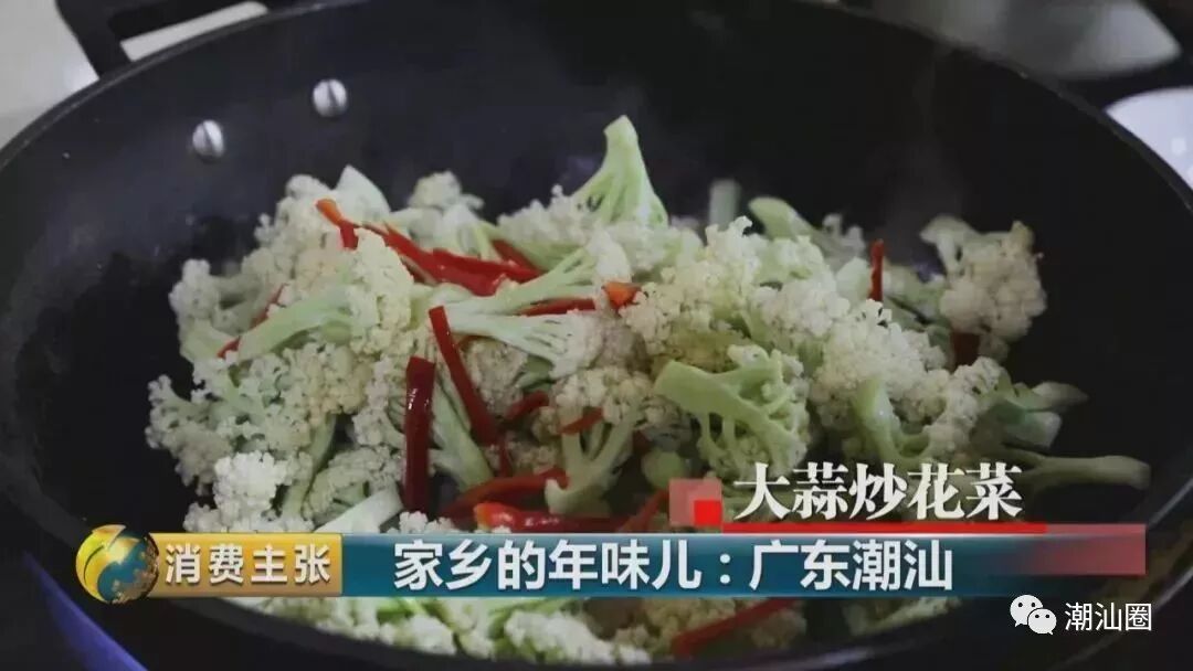 大蒜炒花菜,看似简单,寓意深刻。在广东潮汕人的眼里,花就是发,蒜即是算,新年里会发又会算,一定是个好兆头。先爆炒一下大蒜,再把花菜焯水,之后在加入适量的盐,就是这道大蒜炒花菜了。 潮汕人最擅长的还是烹饪海鲜。把海参洗净泡发好,再把芹菜炒好。之后再加入沙茶酱、猪油和水,等到沸腾,再倒入海参,爆炒海参,简单营养。