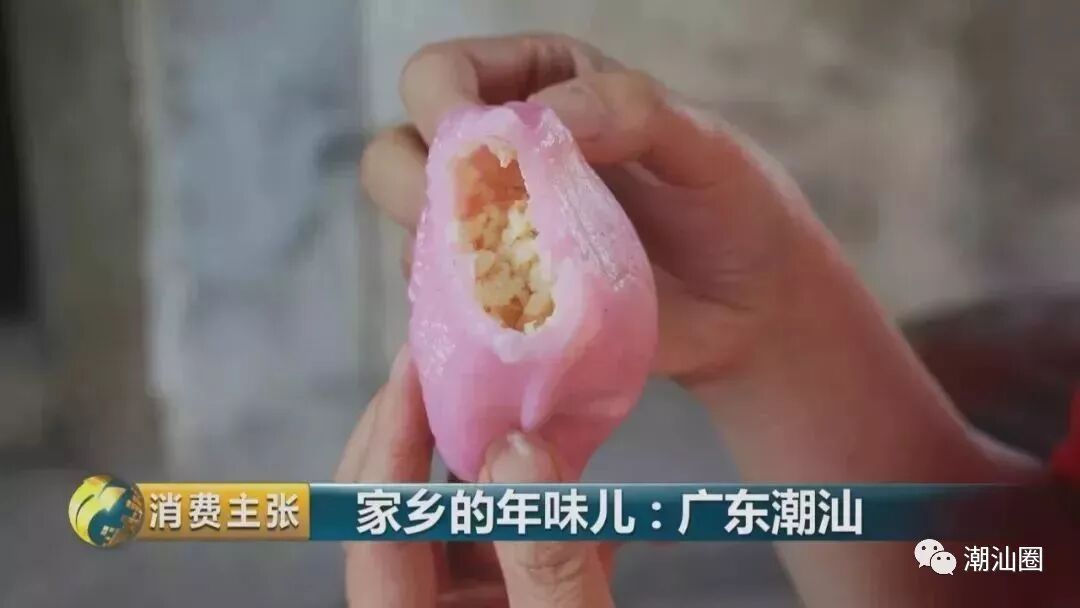 记者:这个皮是软软的,糯糯的,那种年糕的感觉,里面是绿豆的咸馅儿。 林贞标:不一定什么馅儿,花生米、虾、鱿鱼,包括肉都可以,发挥极大想象空间。 潮汕圣果